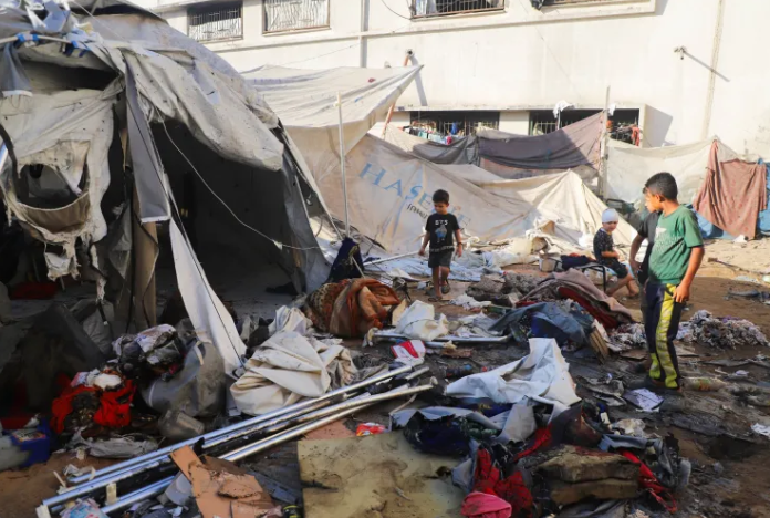 - Two children in a school-turned-shelter, highlighting attacks on civilian infrastructure.